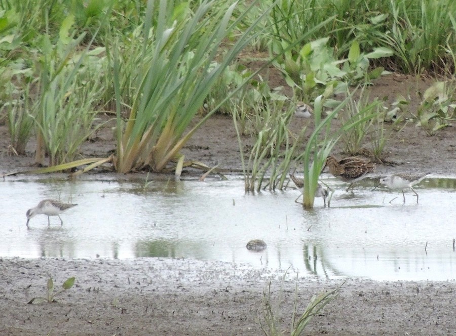 Fuglene kunne ses i vestenden af Nørresø og umiddelbart nord for bænken. Der fouragerede de sammen med Dobbeltbekkasiner, Hvidklirer, Tinksmede, Brushøns, Krumnæbbede Ryler, Temmincksryler og Lille Præstekrave.