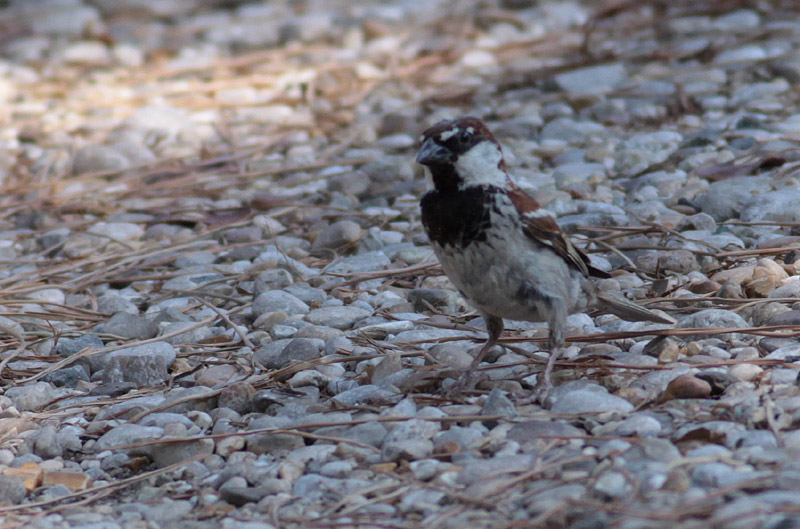 Beskrivelse: Italiensk Spurv angives mest som ren art: Passer italiae. Her på Netfugl regnes den tydeligvis som en "hybridsværm". Hannen er karakteristisk med sort på struben, der tit er mere udbredt og "uldent" i kanterne end vist i f.eks. "Fugle i Felten". Det ser ud til, at strubepletten er størst lige nu, hvor bræmmefældning (afslidning af lyse fjerbræmmer) har fundet sted og fuglen er i slidt dragt.