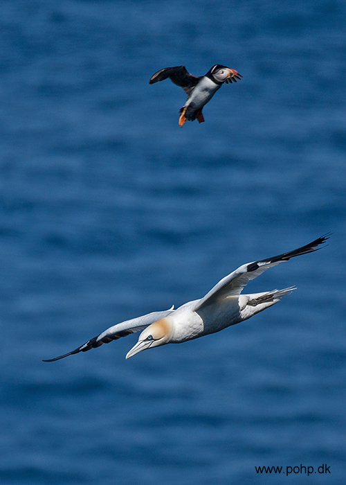 Beskrivelse: Når man sidder på Mykines og fotograferer flyvende Suler, kan man trods alt, stadig risikere at få en Lunde på kortet. Jeg opdagede den først om aftenen, da jeg så billederne igennem.