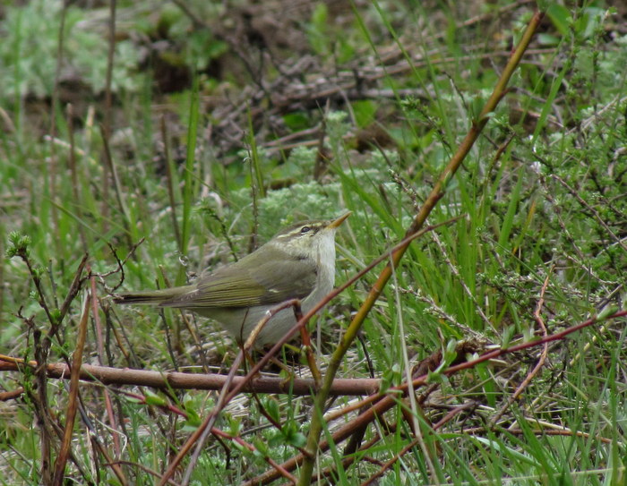 Sjovt nok husker jeg ikke fuglen som påfaldende større, men måske har jeg bare været fokuseret på, at her endelig var en fotogen Phyl, og så ladet mig lulle i søvn af kaldende og syngende Lundsangere i nabolaget?
