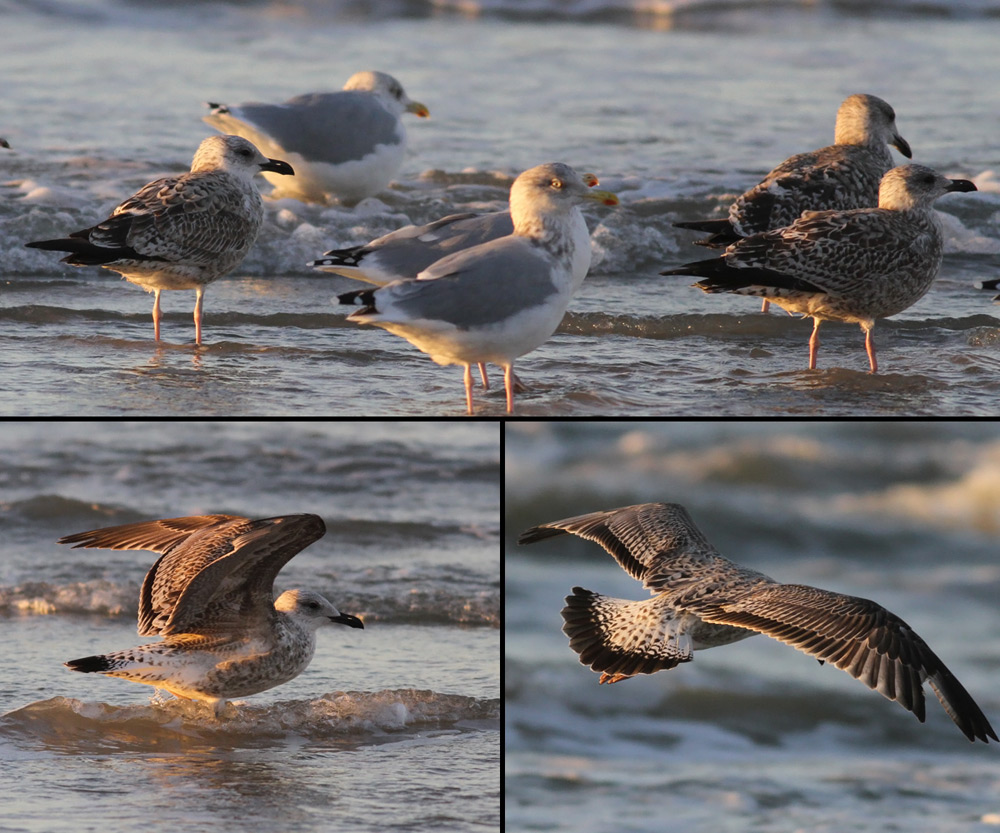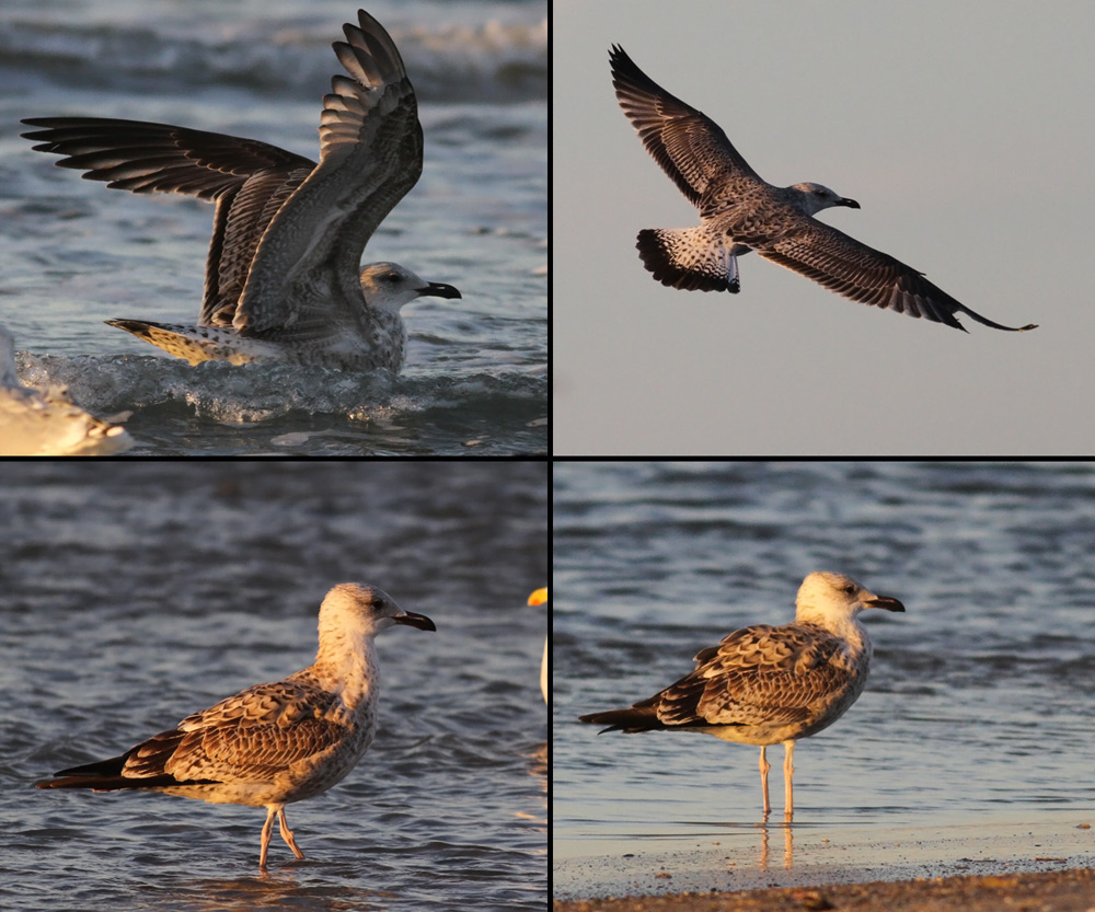 Min første tanke, da jeg så denne fugl var ikke 1K Kaspisk Måge, men da jeg fik fuglen op at flyve blev jeg hurtigt sikker på, at det ikke var en Sølvmåge. Jeg tænkte faktisk en del på Middelhavssølvmåge i felten, men da jeg kom hjem og fik kigget fotos igennem blev jeg mere hooket på hybrid mellem Kaspisk Måge X Sølvmåge.