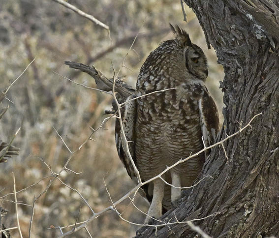Beskrivelse: Andre opdagede hornuglen, den lignede træstammen fuldstændigt, så den var svær at se.
