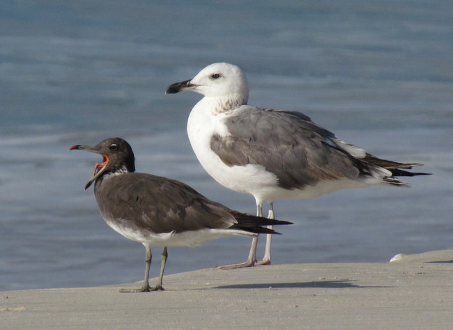 Beskrivelse: På strandene i det sydlige Oman er Sodfarvet Måge den mest talrige (tusinder), mens antallet af Heuglin's (Silde-) Måger tælles i hundreder på de mest populære strande.