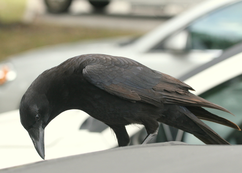 Beskrivelse: The crow is examining our rental car on the parking lot at the gates to Everglades. The voice supported the ID - but also the rather heavy bill.