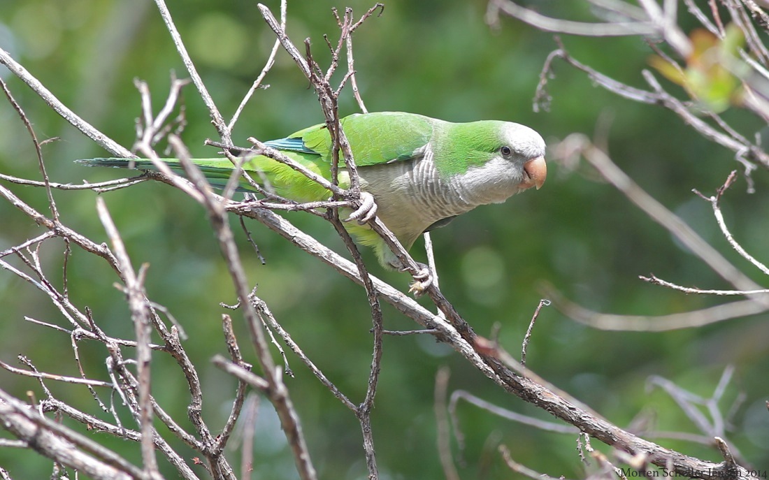 Beskrivelse: Munkeparakiten er i dag et larmene indslag i Roms parker.