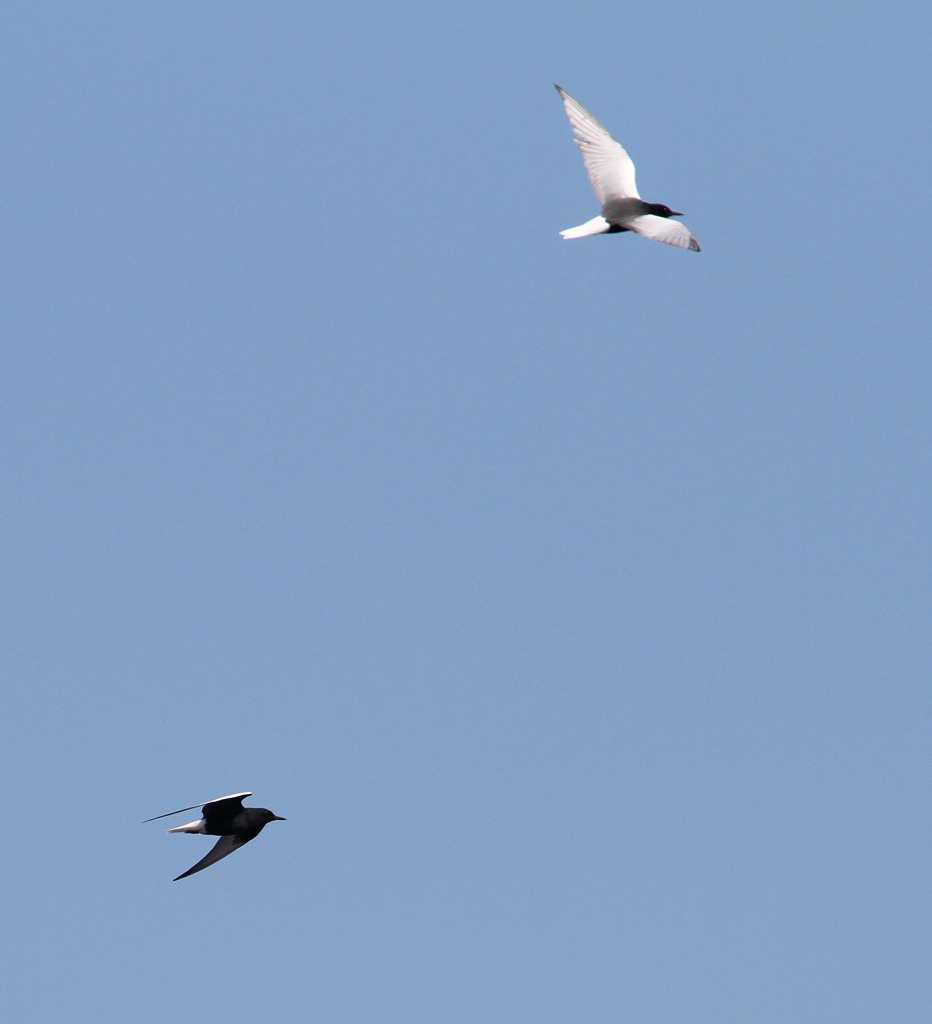 Titel: To ud af de ca. 583 Hvidvingede Terner, der kom forbi mosen.