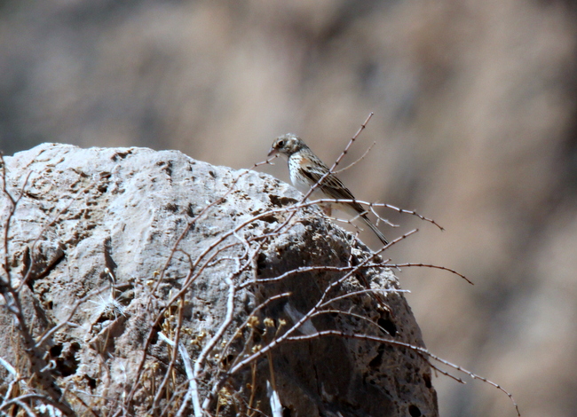 Beskrivelse: A sparrow not always easy to identify. Here it is sitting with some important features visible. Head pattern, white eyering,clear dark spots on whitish breast and last but not least.. the brown 'lesser coverts' near the shoulder.