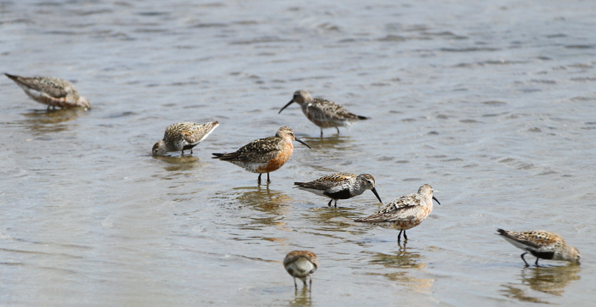 Beskrivelse: Kæmpede mod el-hegn og duvende siv, men fik dog dokufoto af 4 styk krumnæbbet ryle i selskab med alm. ryle.