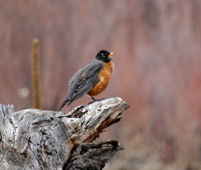 Beskrivelse: I marts er Vandredroslen en af de mere iøjnefaldende trækfugle i Colorado, hvor der ofte er overflyvende småflokkke.