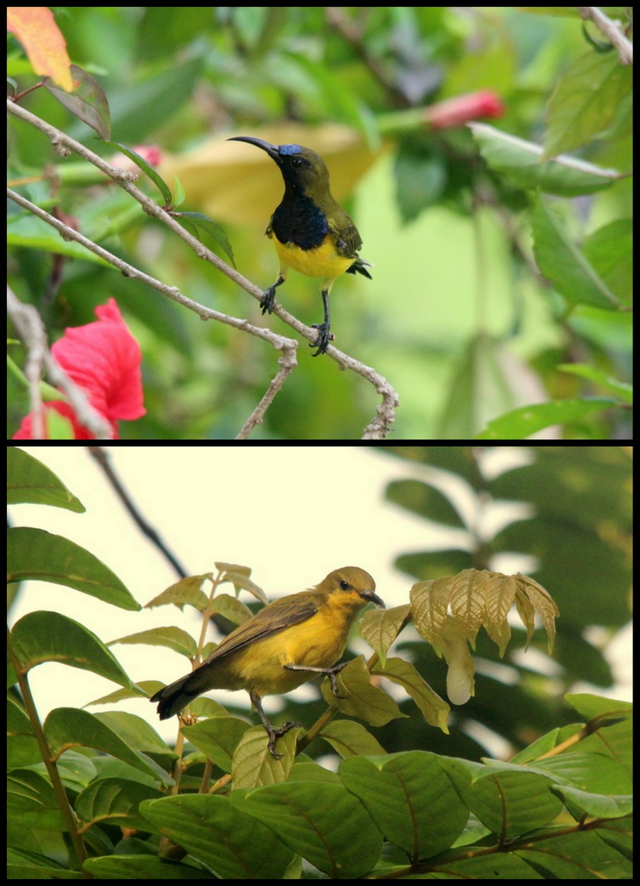 Beskrivelse: Male and female. Note that the female is occupied with a protein-supplement to the flower nectar carb-food by eating the 'insect-egg-foam' on the leaf.