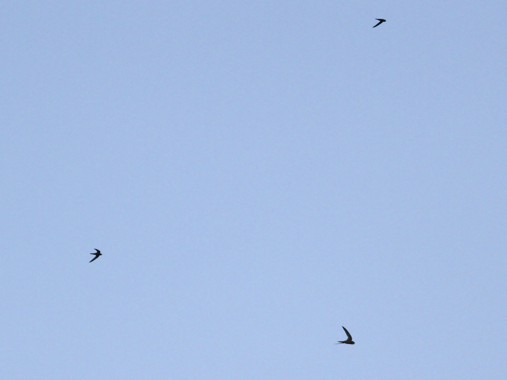 Beskrivelse: Size comparison of Mottled Swift (bottom right corner) and two Nyanza Swifts.