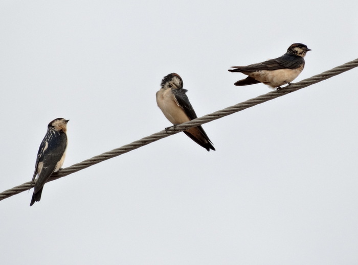 Første indskydelse var snavsede bysvaler, men med mere dagslys, kunne de bestemmes til den ofte ret lokalt forekommende Preuss's Cliff Swallow.