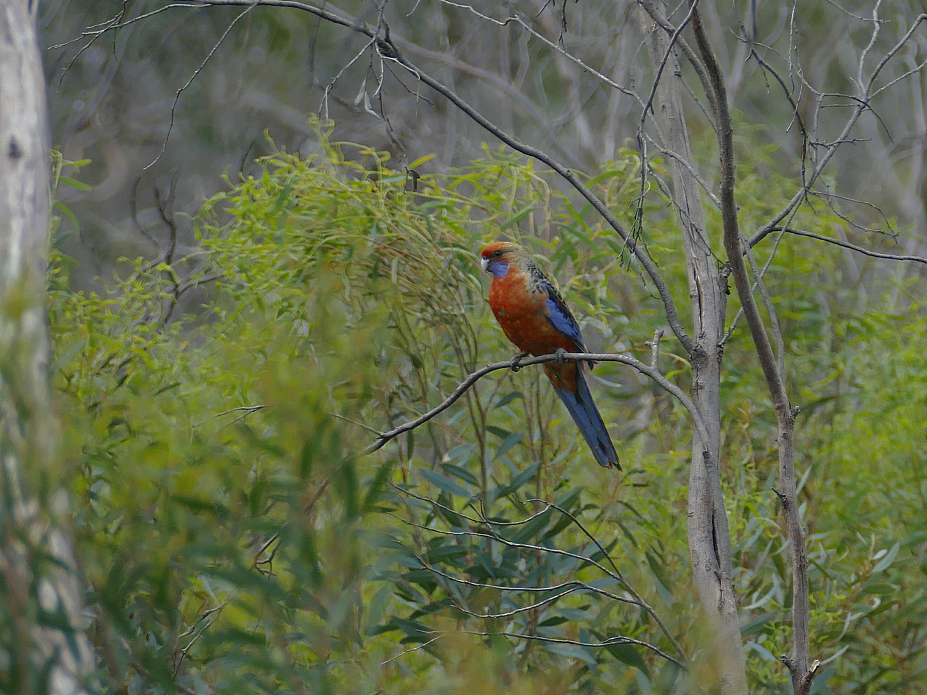 Beskrivelse: Crimson Rosella er så farvestrålende at den nærmest lyser op, selv inde i en dunkel regnskov.