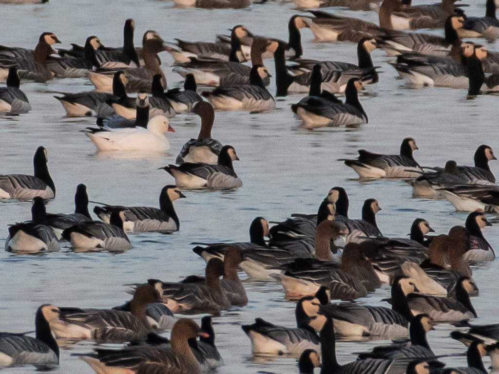 Jeg er i tvivl om en ren 2k Dværgsnegås kan vise reduceret blåt på næbbet på denne tid af året. I litteraturen angives arten at skifte til helt adult-lignende dragt i løbet af første vinter (men hvis de er undsluppet kan de måske være klækket på en usædvanligt tid af året).