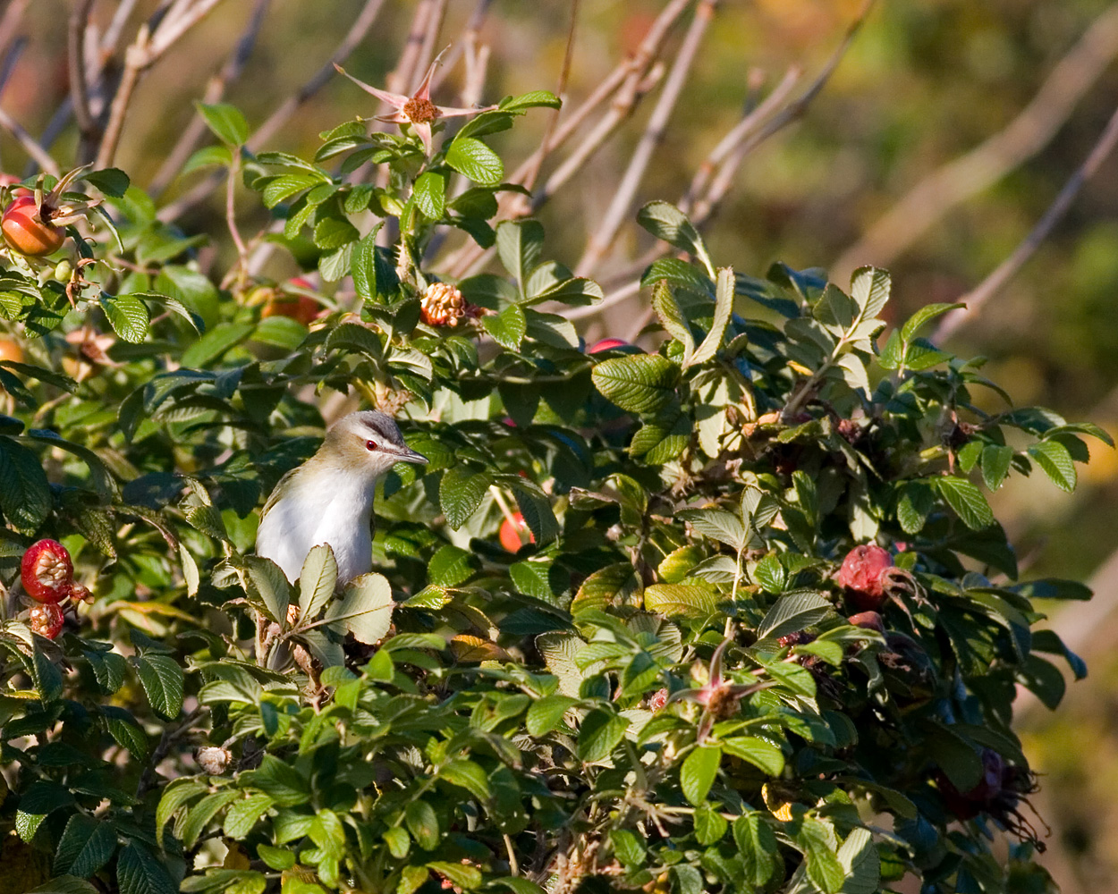 Beskrivelse: Iden kraftige blæst var vireoen svær at arbejde med. I løbet af formiddagen kald 2 gange (lyder lidt ala lys Kvækerfinke eller lyst nasalt stærekald af den type), men ved 1330 tiden viste den sig fint.