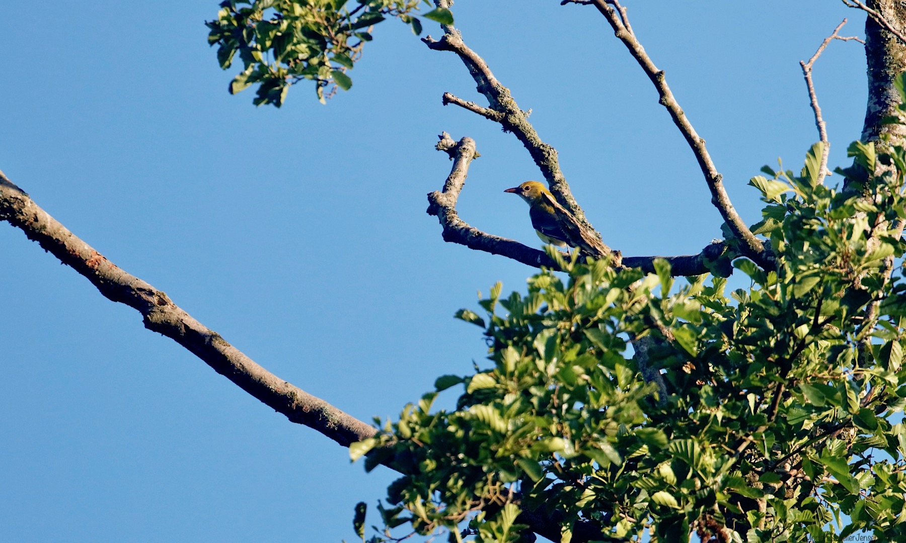 Beskrivelse: Nok en af de mest agressive piroler jeg nogensinde har oplevet. Ud over at den jagtede skovskader, så jagtede denne lille grønne pirol endda også en spurvehøg!!!