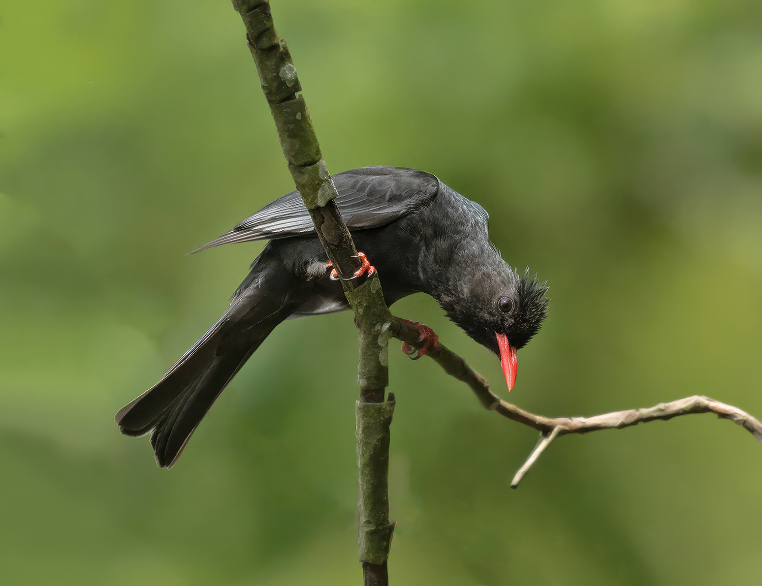 Beskrivelse: Black Bulbul i den centrale del af Kina tilhører den hvidhovede gruppe, og som mange andre steder i udbredelsesområdet kan den være almindelig i skovene, grænsende til det belastende.
