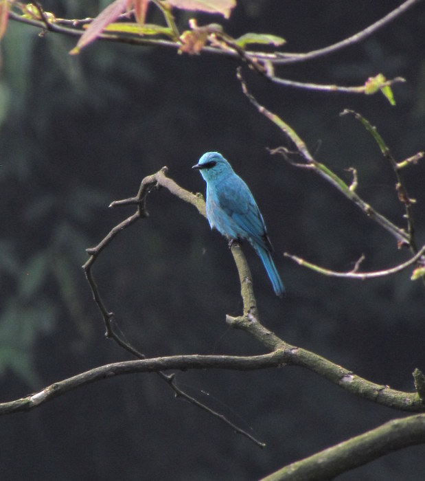 Da jeg så Arnes foto (ovenfor), kasserede jeg nærmest straks bestemmelsen til Large Niltava, men hvad var det så. I første omgang synes jeg (som Helge), at den var for farvestrålende til en Verditer Flycatcher. Men snart efter så jeg ikke andre muligheder end Verditer Flycatcher. Niltava-arterne og Cyornis-arterne (herunder Hainan Blue Flycatcher; jeg overvejede også Pale Blue Flycatcher), men fandt alle for rent blå på oversiden, uden den grønlige tone jeg så på Arnes fluesnapper. Og nogle mangler den sorte tøjle.