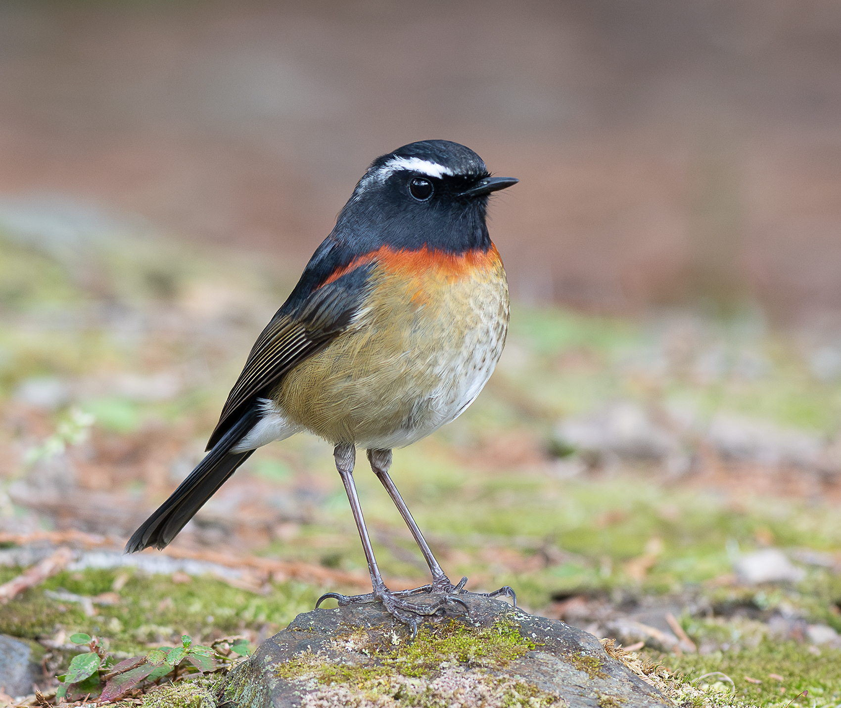 Beskrivelse: Collared Bush-Robin – Taiwan Blåstjerten – har nogle fine, blåligt metalliserende fjer,