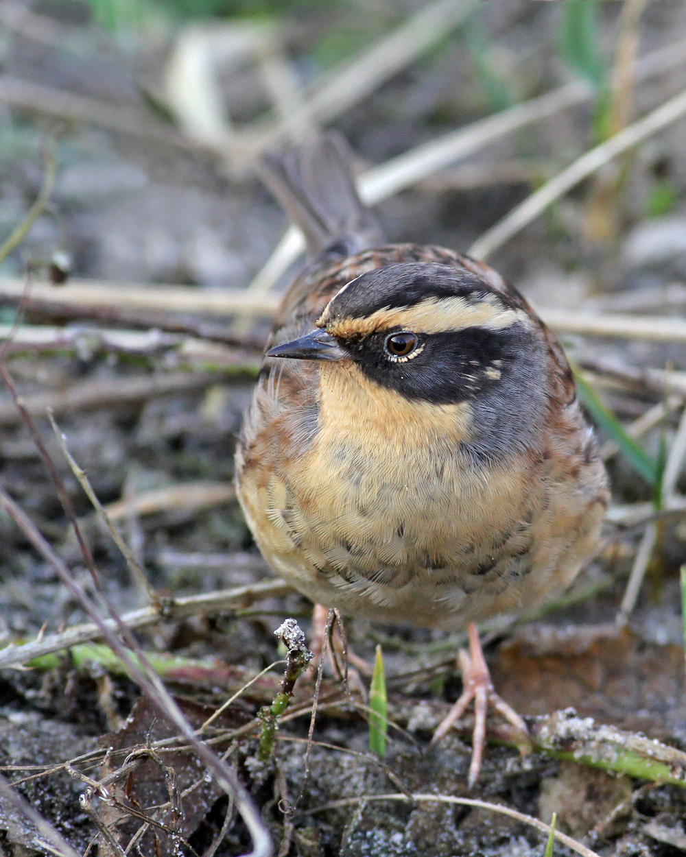 Beskrivelse: Jeg kom derop kort efter solopgang og var heldig, at denne smukke fugl i en kortere periode var fint fremme. Den sad både lavt og højt i buskene og sad indimellem og kaldte lidt, inden den gik ned på jorden for at finde føde.