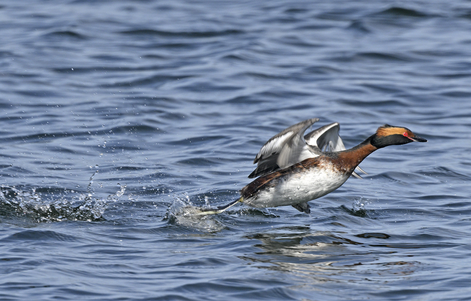Titel: Nordisk Lappedykker, han ved overspringsbevægelse