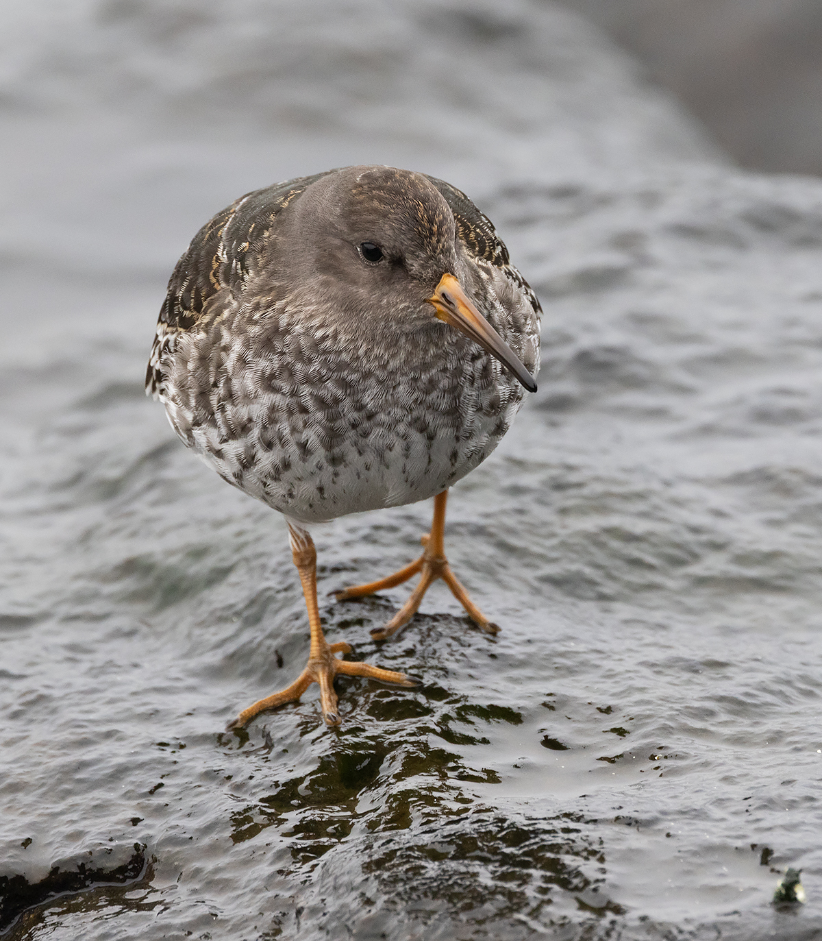 Beskrivelse: Så 15 sortgrå ryler på molen i Hvidesande. Væksterne på stenene siede smådyr fra bølgerne.
