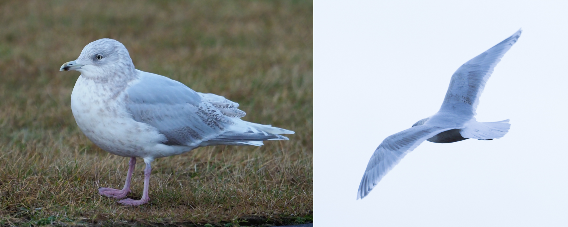 Tak for kommentarerne. Det må være den fugl, der også er dokumenteret 21.1. Fed var den, og den gjorde i felten det ret typiske kumlien´s indtryk: en Hvidvinget Måge der trænger til at blive vasket.