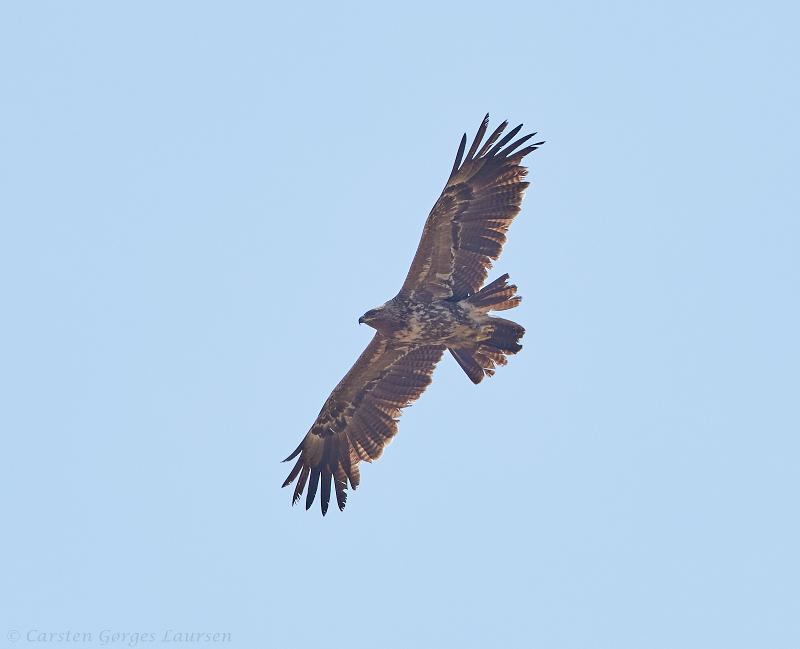 Beskrivelse: 1 ud af 2 Små Skrigeørne der lavede opvisning lige over vore hoveder. Også Høgesanger, Flodsanger, Pungmejse, Pirol, Fiskeørne, Havørne, mv. denne morgen.
