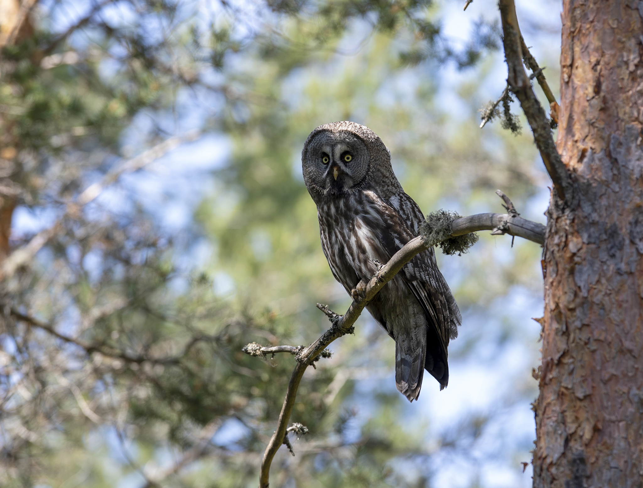 Beskrivelse: Uglen set i perioden fra Nytårsdag til foreløbig 10. januar 2023 rastende typisk højt i ældre fyrretræer