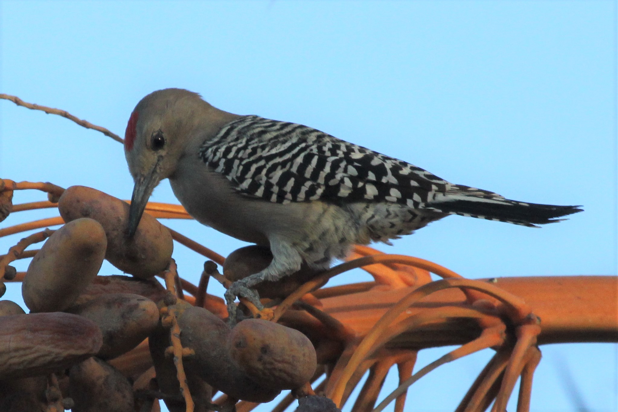 Titel: Gilaspætte i gang med at spise dadler