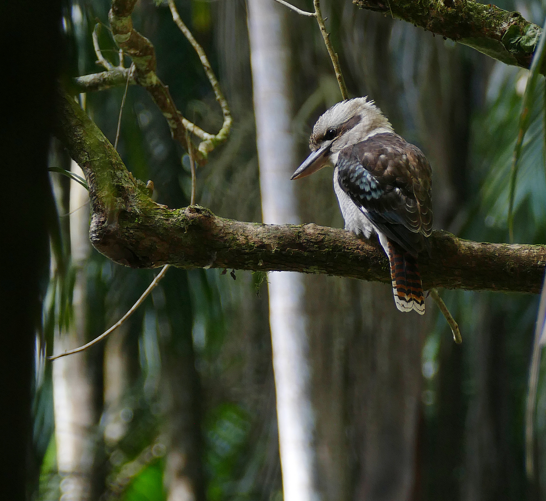 Det grønne skær på de centrale halefjer skulle betyde, at dette er en hun, mens hanner har helt blå halefjer.