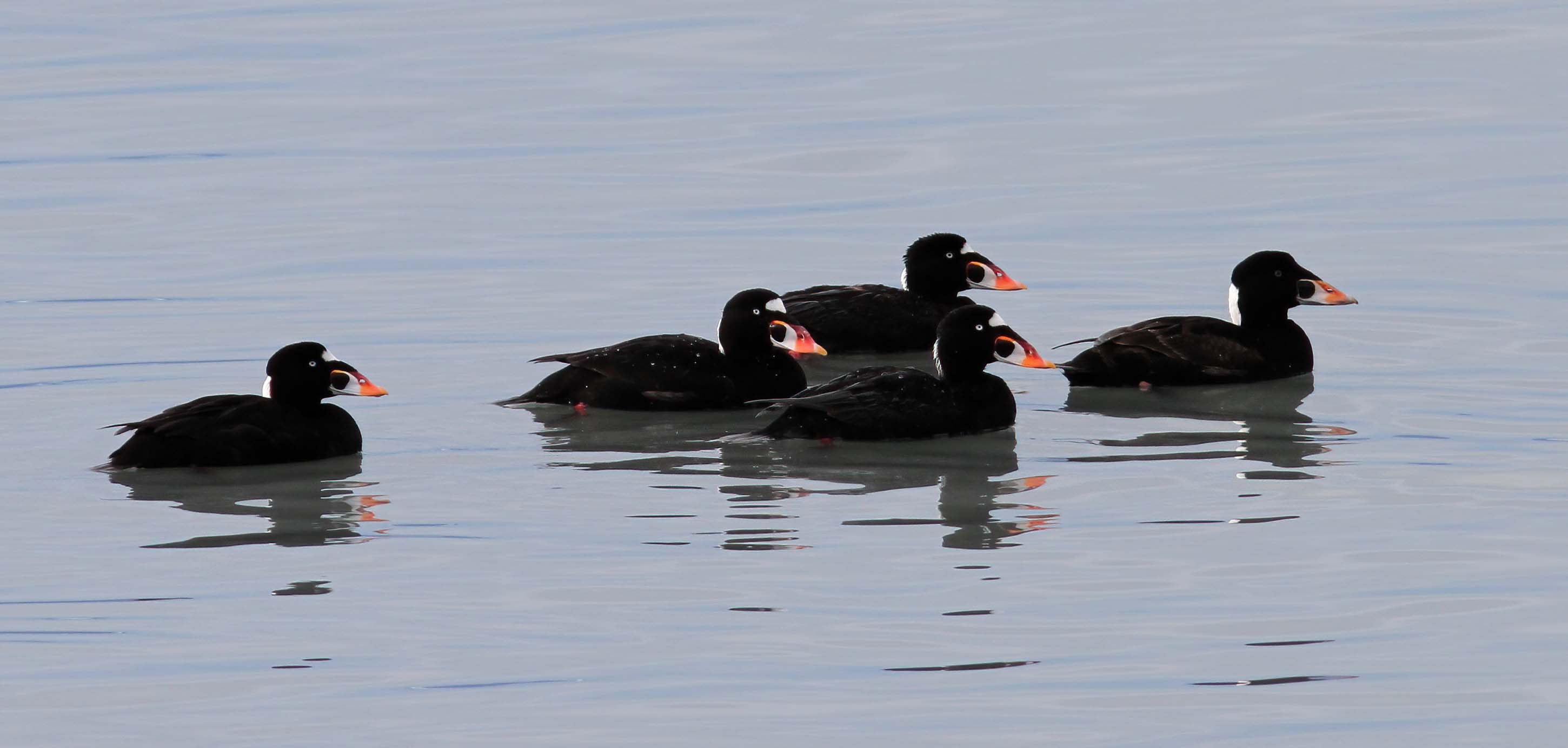 Beskrivelse: 4 adulte hanner og en formentlig 3k han med manglende pandeplet og lidt slankere næb.