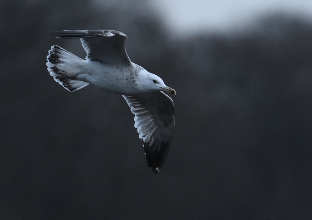 En lille korrektion: Middelhavssølvmågen er fotograferet i Utterslev Mose. Næbbet er i øvrigt fuldt muligt for Middelhavssølvmåge: de største næb jeg har set hos arten er fra de undertiden brutalt store fugle fra vestlige Middelhav, mens fugle fra det østlige Middelhav til Sortehavet ser ud til generelt at have lidt slankere næb. Til Utterslev-fuglen kan tilføjes, at underv ingedækfjerene var mørkere end hos Kaspisk måge, og tydeligt afstikkende imod den lysere bug. Overvingen er i øvrigt ganske mørk, ala Sildemåge og halens endebånd kulsort imod hvid, svagt plettet halebasis.