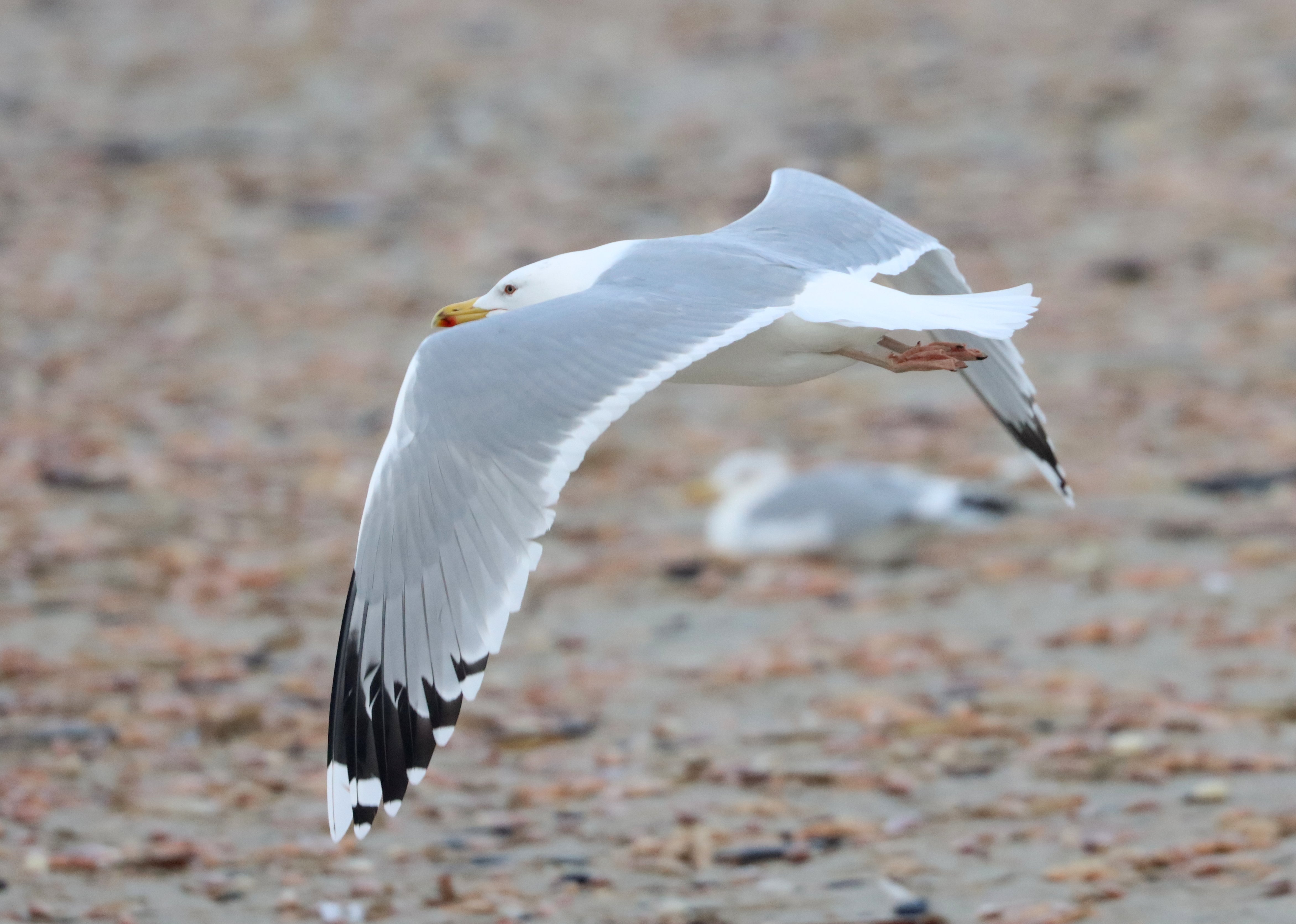 Beskrivelse: Afvigende individ med grå tunger på P8 og P9. Bestemt af eksperter på facebookgruppen WP-gulls. Se også vingefoto.