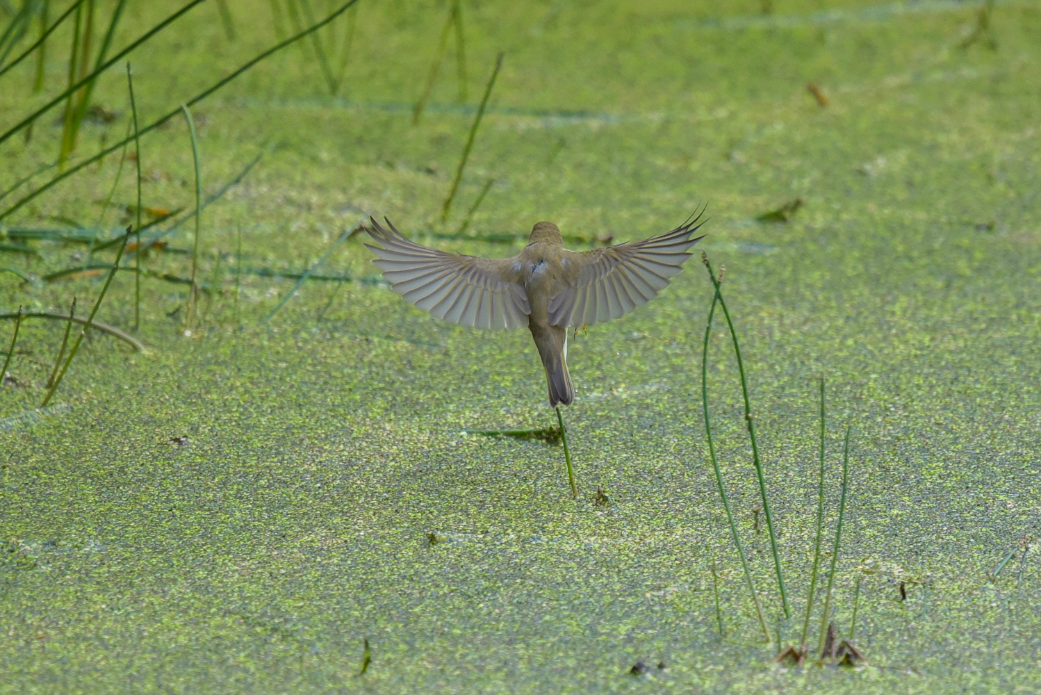 I øvrigt tydeligt, at projektion af håndsvingfjer kun er ca 50% af 'tertiær-længden' (ift Løvsanger - hvor længden er 'ens')