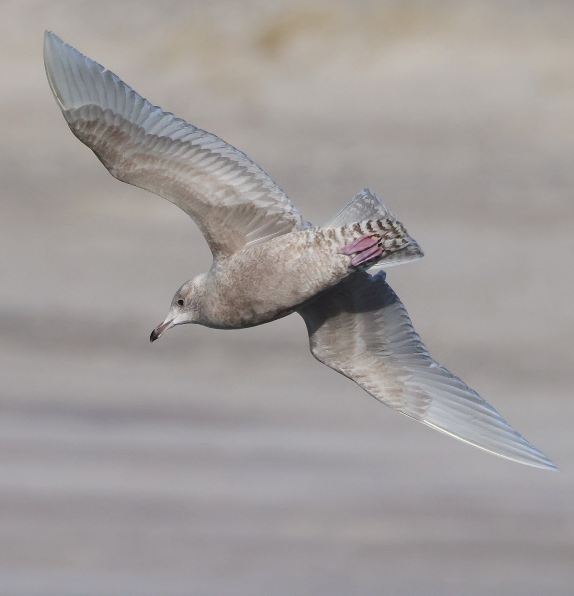 Beskrivelse: Denne 3K Hvidvingede Måge brugte jeg lidt ekstra tid på i dag. Især, naturligvis, på grund af de mørke markeringer i håndsvingfjerene. At der er tale om en Baffinmåge er muligt. Bemærk hvordan de ydre håndsvingfjer er mørkere end de inderste, samt at der er antydning af en lille rude i den yderste håndsvingfjer. Kommentarer er meget velkomne.