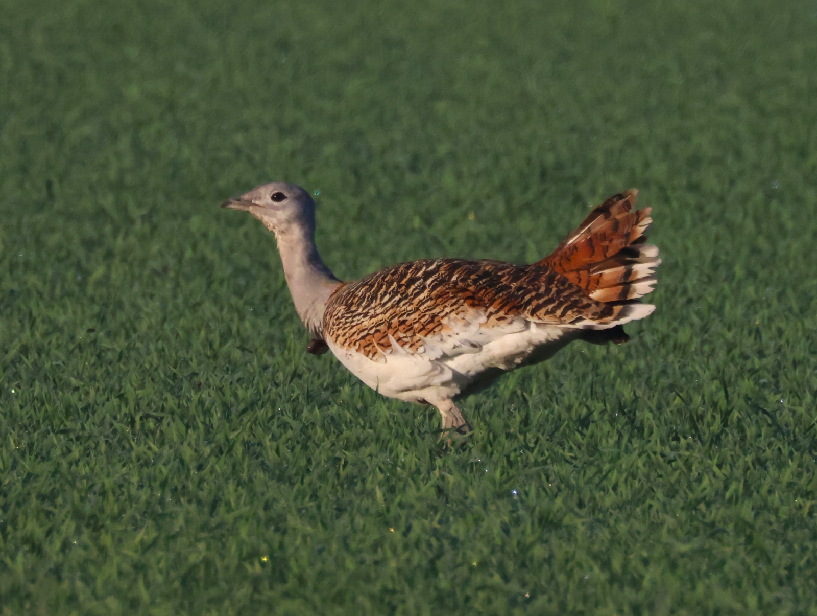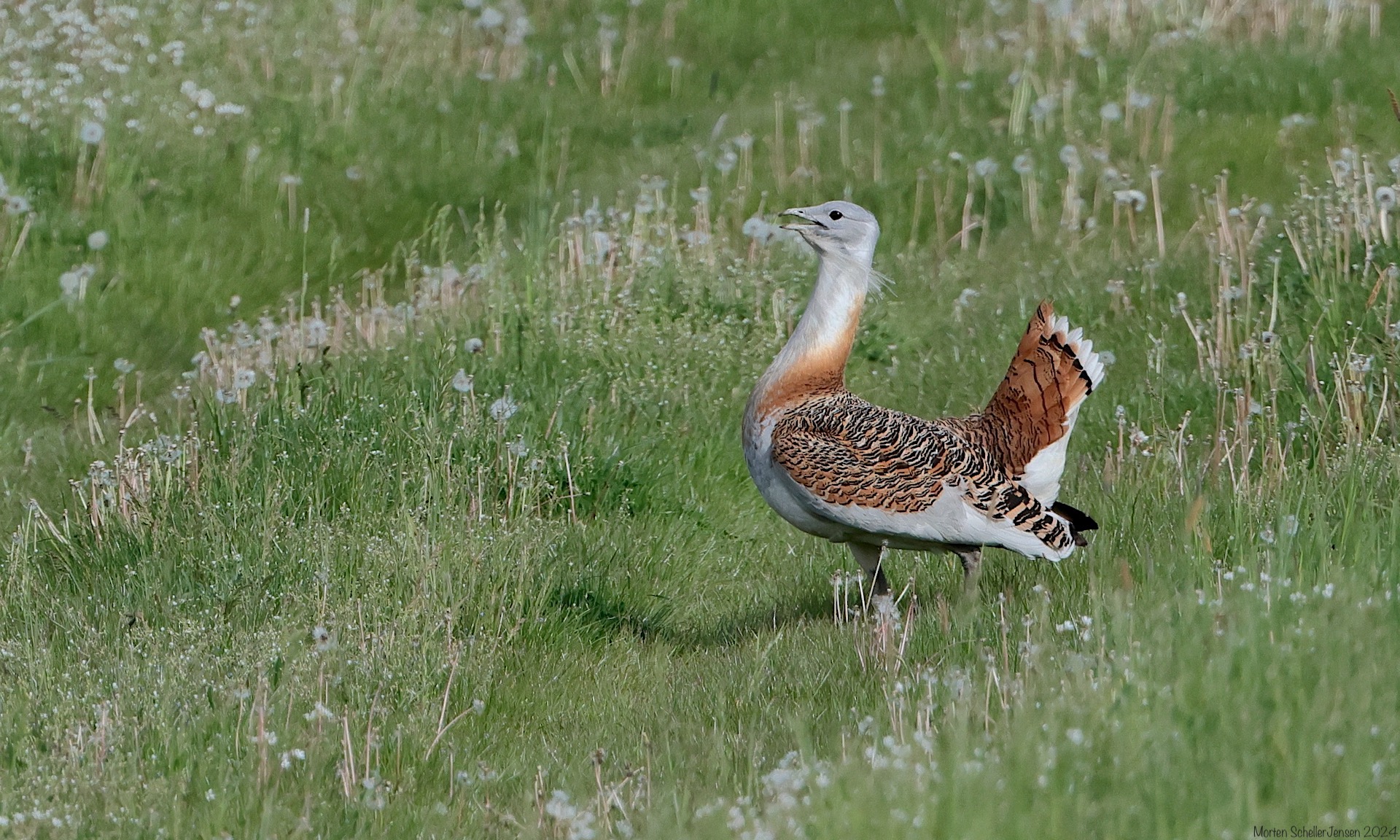 Beskrivelse: Så lykkedes det endelig at komme på rimelig fotoafstand til stortrapperne. De viste deres parringsdans i den spæde morgensol.