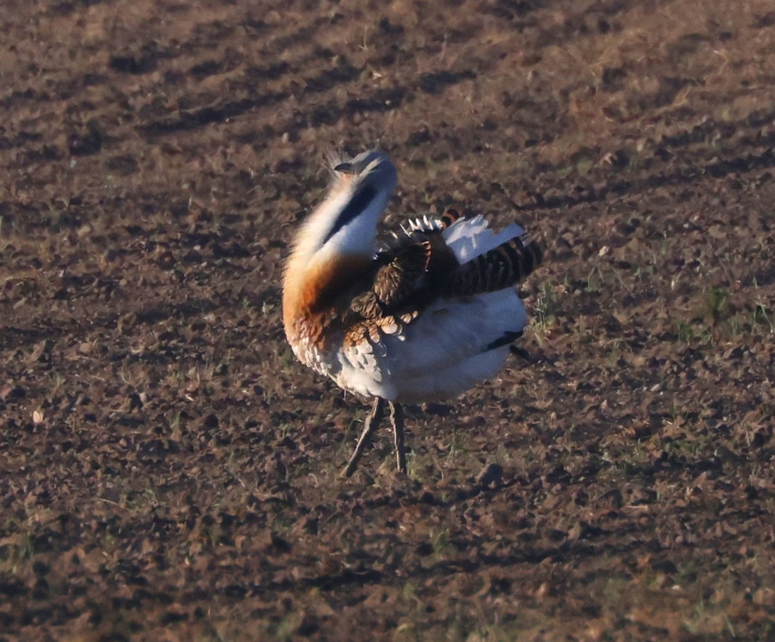 Beskrivelse: Beskrivelse: Beskrivelse: Så lykkedes det endelig at komme på rimelig fotoafstand til stortrapperne. De viste deres parringsdans i den spæde morgensol.