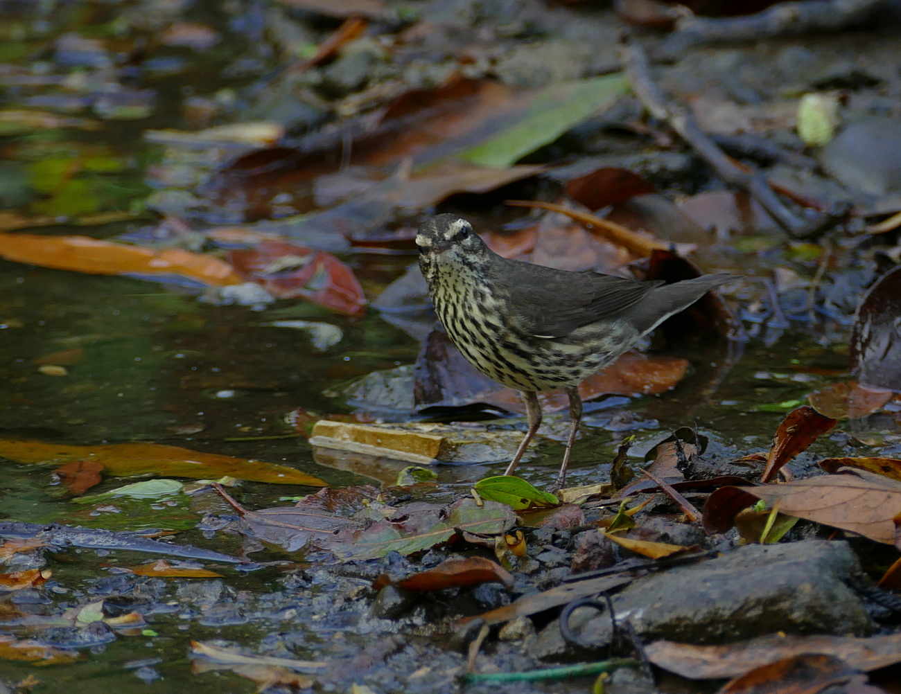 Beskrivelse: Northern Waterthrush kan især findes tæt på vand, (som navnet også antyder), og jeg har efterhånden truffet dem fra vandpytter i storbyparker til mangroveskov på Stillehavskysten.