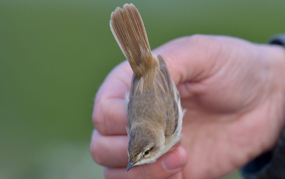 Beskrivelse: Fotograferet efter ringmærkning foretaget af Skagen Fuglestation