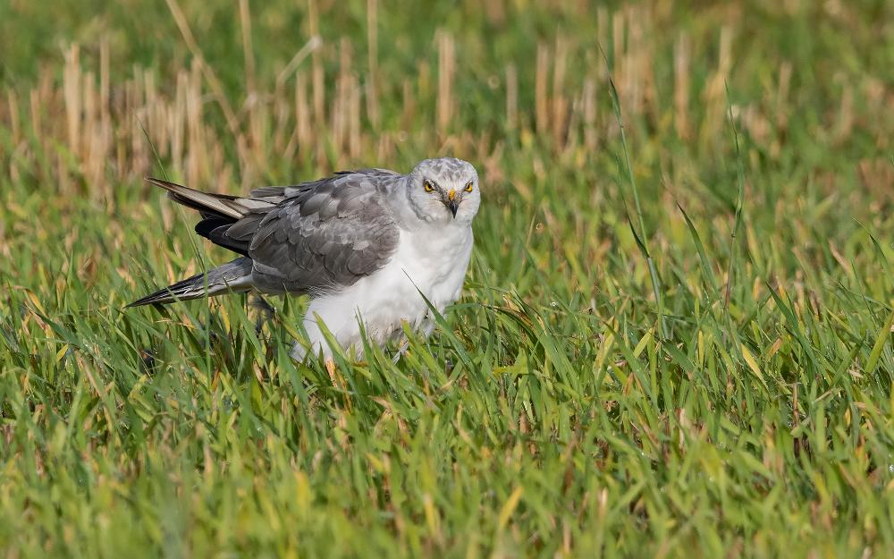 Beskrivelse: Var ude i haven og fodre fuglende da jeg på nabomarken fik øje på denne smukke Steppehøg