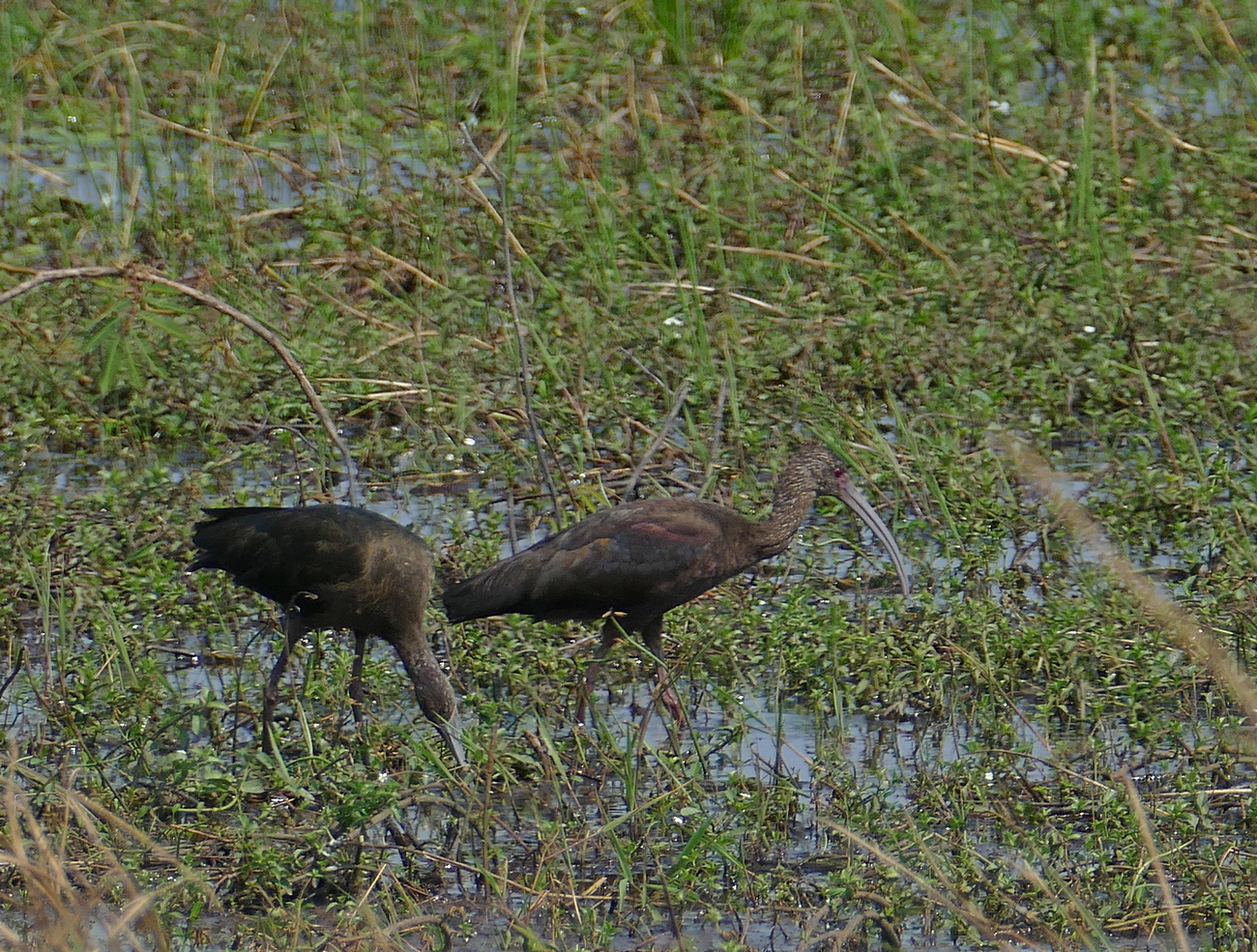 Titel: White-faced Ibis feeding in freshwater marsh.