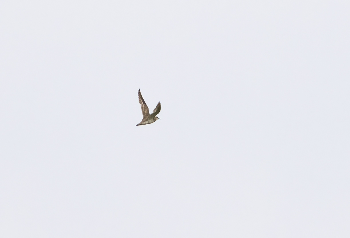 Beskrivelse: Kun en dag efter at have fundet arten dukkede der på stor-lokaliteten endnu en fugl op. Denne opdagedes ca. 2 km. syd for Vidåslusen, hvor den opholdt sig sammen med Hjejler. i forhold til gårsdagens fugl var denne større, mere hjejleagtigt proportioneret og med mere udbredt sort gennem undergumpen - hvilket kan ses på flugtfoto, hvor også de grå undervinger står tydeligt frem.