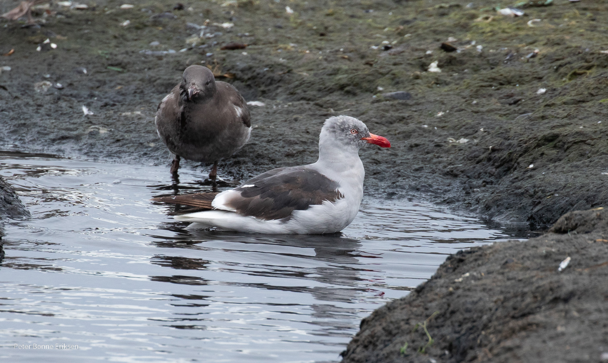 I de par vi så, var der altid tale om en hvid og en broget type,som her. Immature hanner har hvidt hoved og spredte hvide fjer i en ellers hunlignende dragt, men i par så allesete ud som disse to fugle.