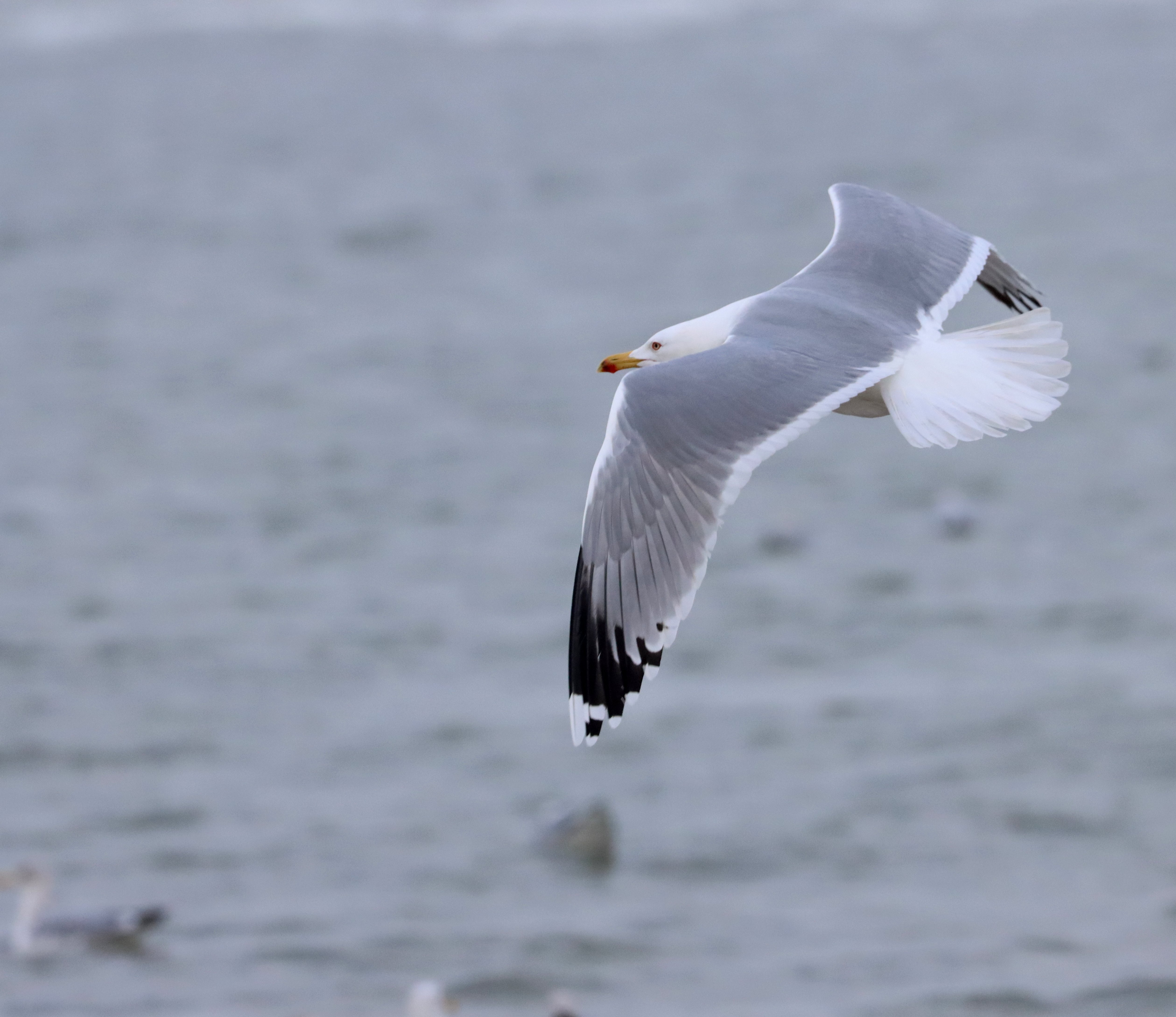 Beskrivelse: Afvigende individ med grå tunger på P8 og P9. Bestemt af eksperter på facebookgruppen WP-gulls. Se også vingefoto.