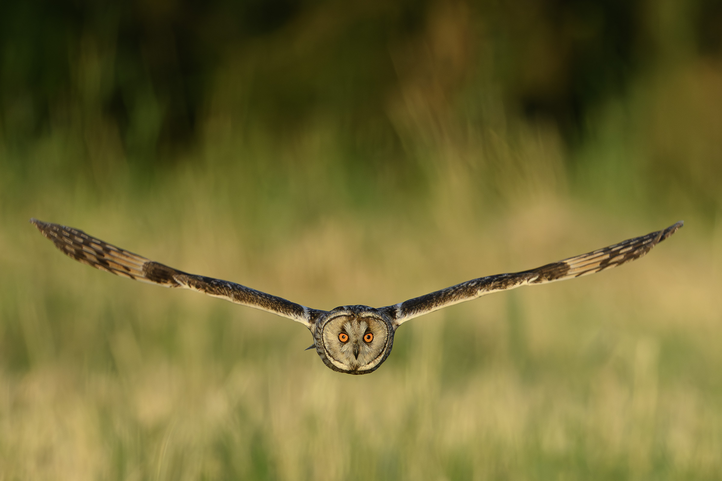 Titel: Skovhornugle i aftenlys