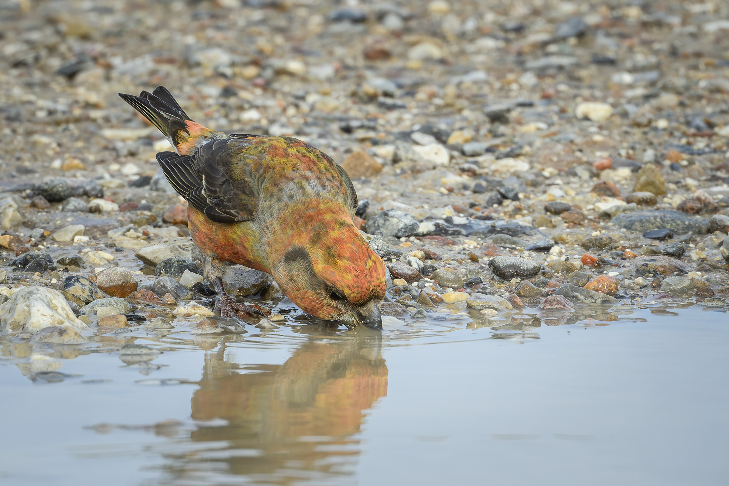 Beskrivelse: Stor korsnæb slukker tørsten